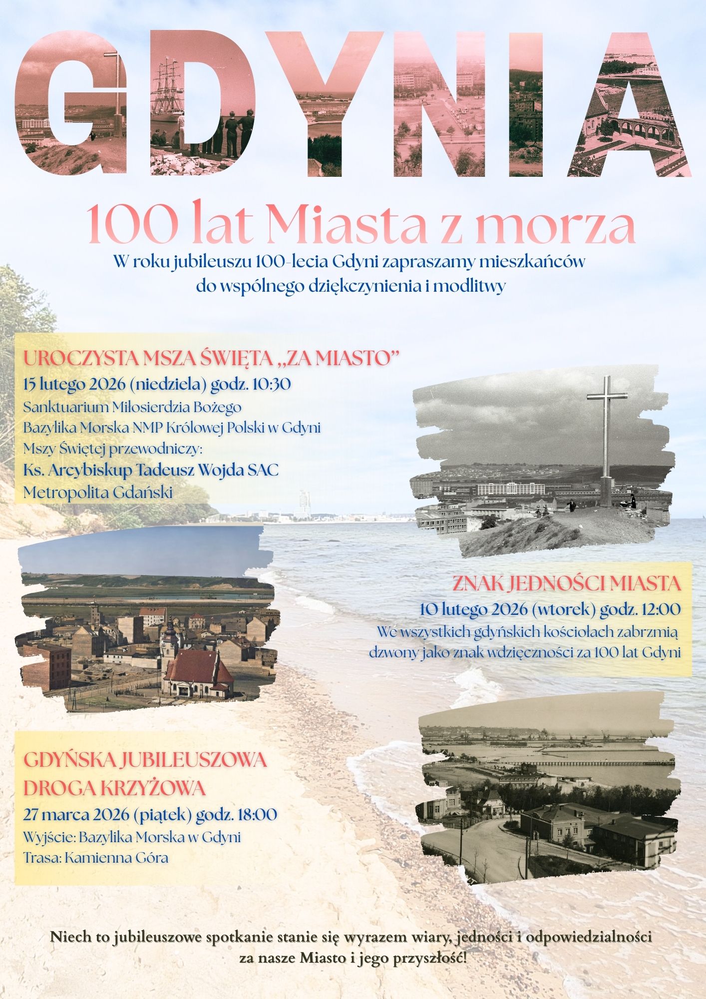 Eucharystia zostanie odprawiona w niedzielę 15 lutego 2026 roku o godz. 10.30 w Sanktuarium Bożego Miłosierdzia przy Bazylice Morskiej Najświętszej Maryi Panny Królowej Polski w Gdyni, pod przewodnictwem Księdza Arcybiskupa Tadeusza Wojdy SAC, Metropolity Gdańskiego.